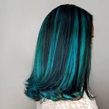 Teal Green Highlights On Black Hair